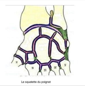 Le carpe est un massif osseux formé de huit os courts agglutinés en deux rangées :