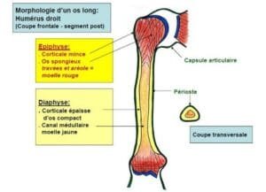 L’humérus est un os long qui forme le squelette du bras. Il s’articule en haut avec la scapula au niveau de l’épaule et en bas avec l’ulna et le radius au niveau du coude. Comme tous les os longs, il comporte un corps (diaphyse) et deux extrémités (épiphyses). L’os est pair mais non symétrique.
