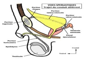 ainsi que le canal déférent, principal conduit d’excrétion des spermatozoïdes.