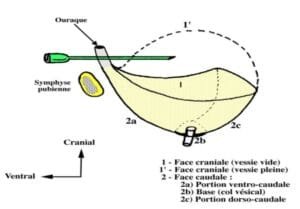Lorsqu’elle se remplit, la vessie devient globuleuse par distension de sa face supérieure, appelée calotte ou dôme vésical.