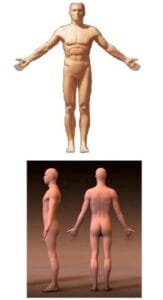 • Axe du corps : axe vertical abaissé depuis le sommet du crâne et passant par le centre de gravité situé au niveau du pelvis.