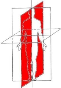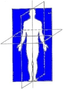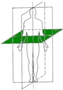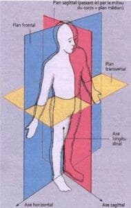 Les mouvements du corps s’effectuent dans un plan et autour d’un axe donné :