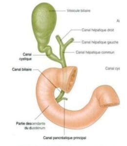 Le conduit cystique fait suite au col de la vésicule biliaire.